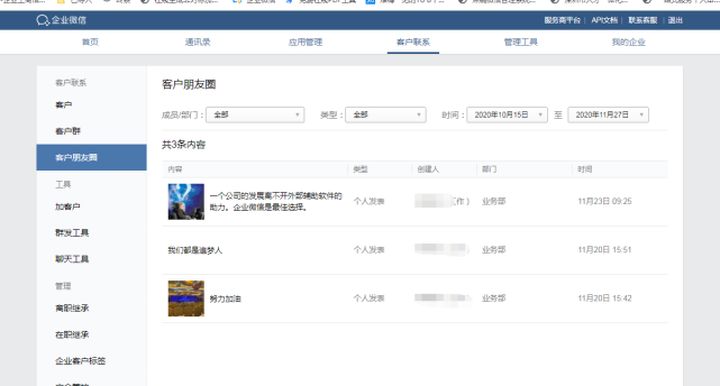 客戶朋友圈申請(qǐng)完成后,企業(yè)就需要發(fā)客戶朋友圈了,這個(gè)時(shí)候按照同樣的方法點(diǎn)擊客戶朋友圈就可以發(fā)了,企業(yè)微信朋友圈和個(gè)人微信朋友圈的頁(yè)面基本相似,并且也可以設(shè)置部分客戶群可見(jiàn),并且發(fā)送的內(nèi)容也大同小異,既可以發(fā)送文字,也可以發(fā)送圖片,視頻等,只要會(huì)發(fā)個(gè)人朋友圈就可以輕松完成企業(yè)朋友圈的發(fā)布。