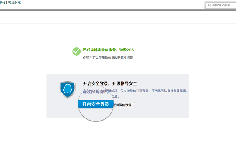 1.綁定微信之后,在安全登錄的設(shè)置,可以看到【開啟安全登錄】的按鈕,點(diǎn)擊開啟。