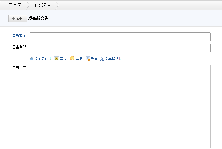 管理員在這里發(fā)布的公告將會(huì)在每個(gè)成員郵箱的首頁顯示出來。當(dāng)前公告最大支持